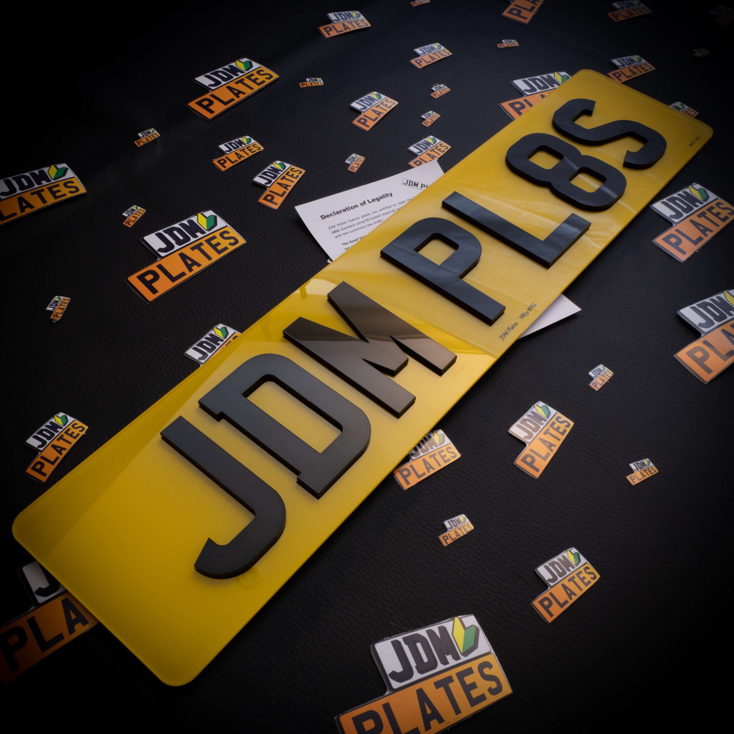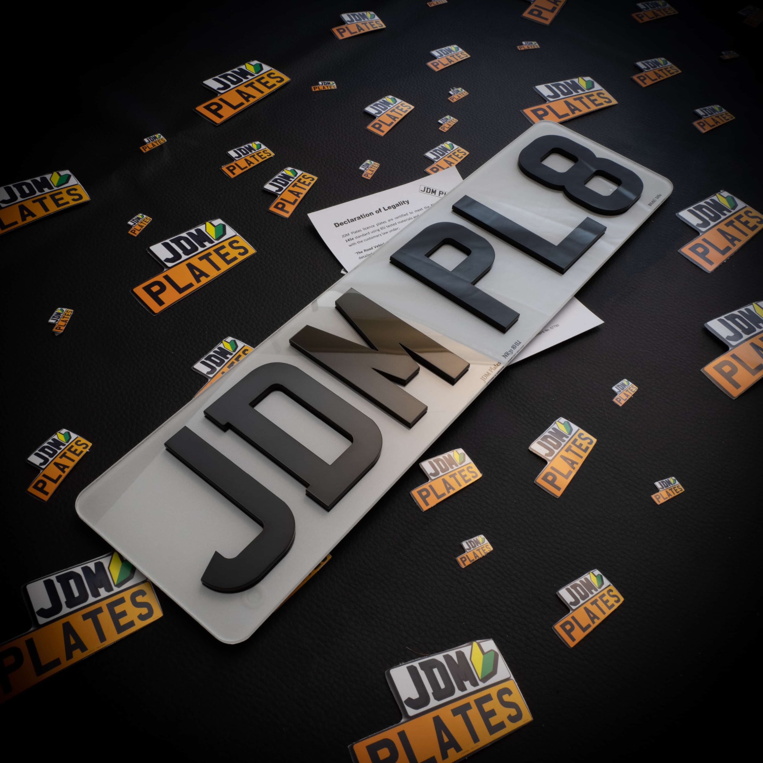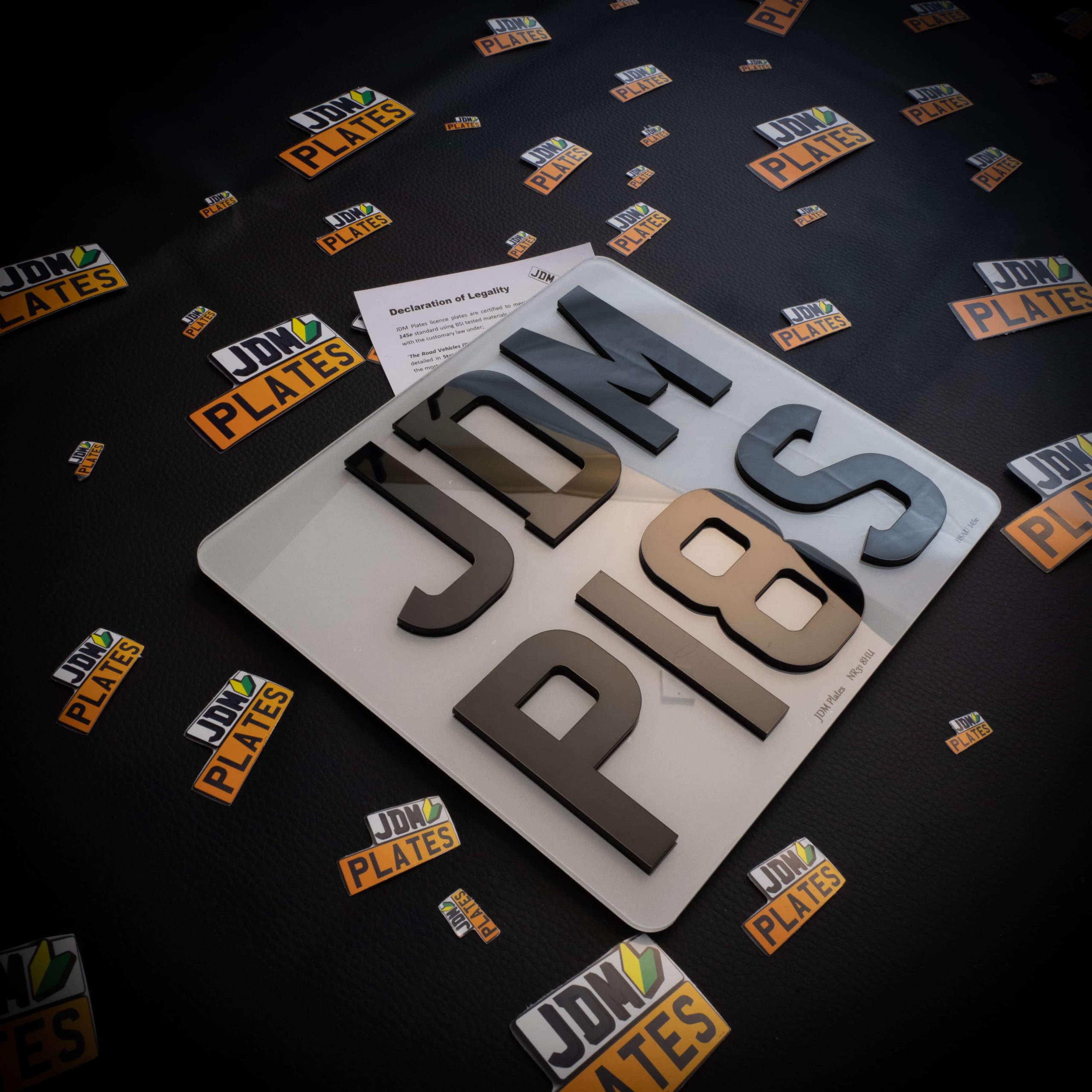 Our number plates are made from high quality materials, consisting of industry standard optically clear poly-carbonate. We use high quality reflective vinyl and double sided adhesive with UV and chemically resistant properties. All of the materials that we use to build our number plates conform to BSAU 145e which result in a high quality finish!